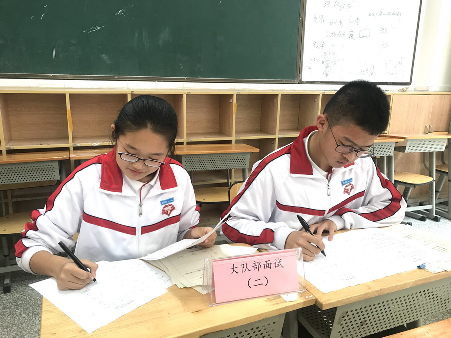 从准备到进班宣传到最后的面试,志愿者们和老师们都全力以赴,为打造一个更好的平台,也为让同学们成为更好的自己。时光转瞬即逝,为何不珍惜现在,努力拼搏,等到来年初秋,想想过去是不是感觉自己好像成长了不少?大队部、学生会已经融入我们美好的学校生活,新的加入、新的起点、新的责任,有付出就会有收获。相信同学们一定会在大队部、学生会铸造一个更好的自己,加油吧!为你们而自豪!