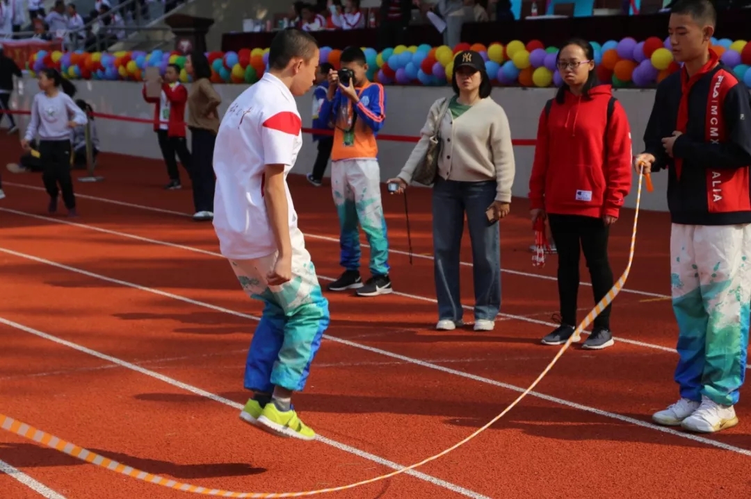 运动场上,每一个班级的运动员们,专注的目光齐齐望向弯转的长绳。当“呼啦”的绳声随着最后一个轻盈的落地而停止时,原本寂静的场上爆发出激动人心的欢呼声,紧张与不安被喜悦和感动替代。也许,他们不是辉煌的第一名,但他们相互的协作,让青春因拼搏更美丽!