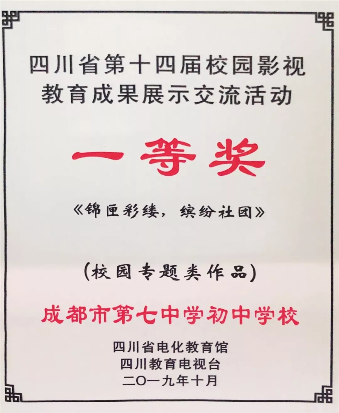 由四川省教育厅指导,四川省电化教育馆、四川教育电视台主办的第十四届四川省校园影视作品成果发布展示交流会在雅安中学隆重举行。来自全省2200多件优秀作品参与角逐,我校作品《锦匣彩缕,缤纷社团》脱颖而出,最终获得校园专题类一等奖。