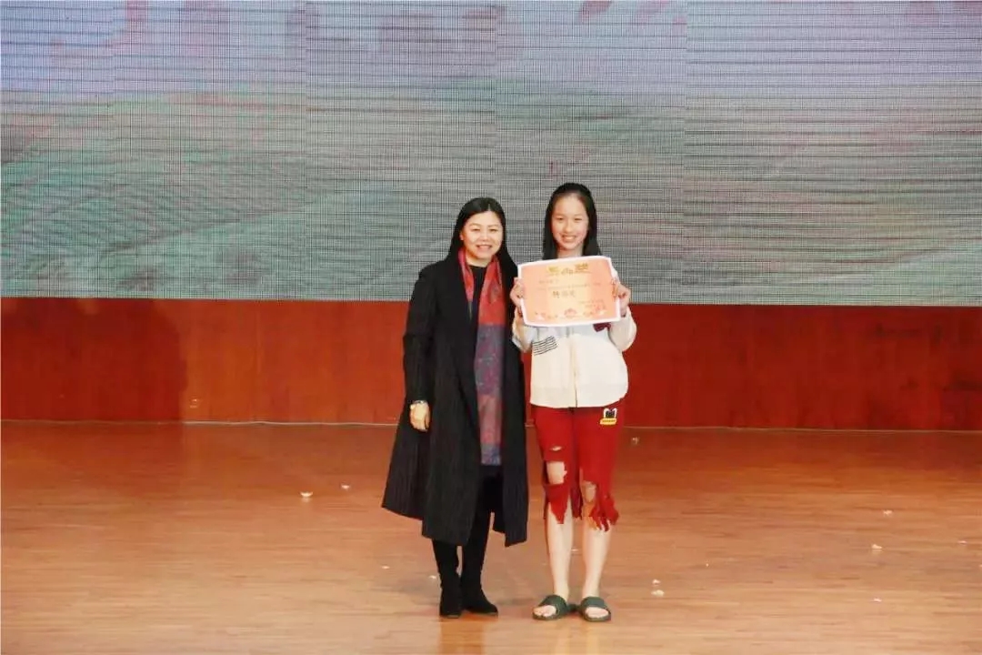 李笑非校长、课程教学中心主任吴旭光老师和初二英语备课组长孙泽福老师,分别为获得特等奖、一等奖和二等奖的班级颁发奖状。