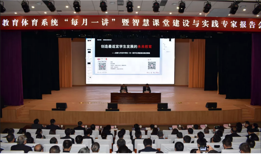 2019年11月30日,11月30日青岛市西海岸新区教育体育系统“每月一讲”暨智慧课堂建设与实践专家报告会在西海岸新区文汇中学举行。成都七中初中学校校长助理郑刚老师应邀在报告会上做了《创造最适宜学生的未来教育--成都七中初中学校智慧课堂建设与实践》的专题报告。校长助理郑刚老师在专题报告会上介绍了我校在建设一对一数字化课堂上的推进策略。来自青岛西海岸新区的近600名校长(幼儿园园长)聆听了郑刚助理的专题报告。来自西海岸新区的某校长表示郑刚助理的报告通俗易懂,受益匪浅,聆听了郑刚助理的报告后更加坚定了他们学校智慧校园建设的方向和目标。西海岸新区某智慧校园建设基地学校校长指出听完郑刚助理的报告解决了他们好多不明白的问题。西海岸新区某幼儿园园长表示,听了郑刚助理的报告后感到很吃惊,应该多向七初学习先进的经验。我校从2012年开始探索智慧课堂建设工作,从最初的1个试点班级到现在的全校常态化的开展智慧课堂教学,行成了成都七中初中学校特有的智慧课堂开展方式。学校先后被成都市教育局遴选为首批成都市未来学校建设试点单位,被中国教育科学研究院确定为首批全国未来学校实验示范学校。学校基于智慧课堂的《未来课堂探索与实践》获得教育部2017年度基础教育信息化应用典型案例在全国推广。