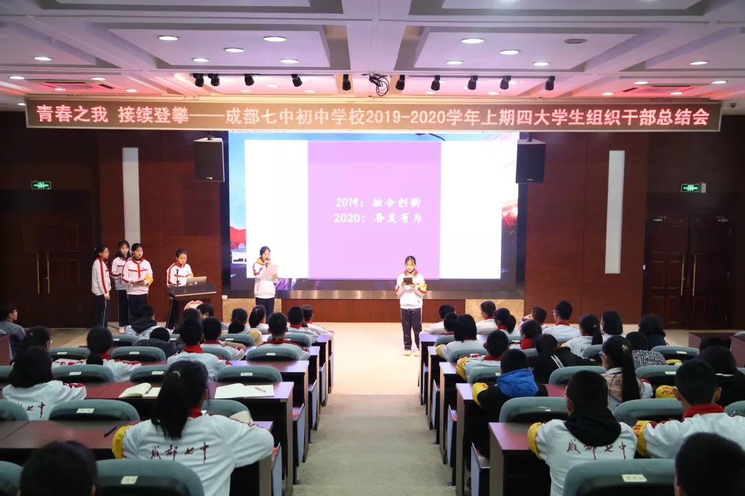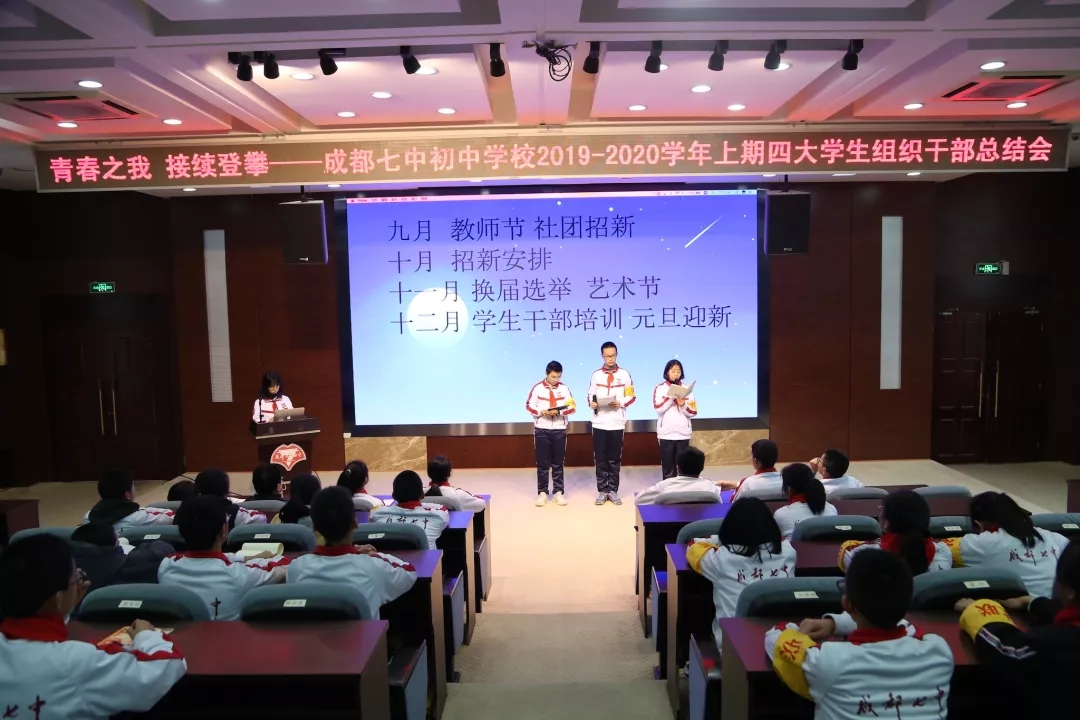 时光匆匆如白驹过隙,转眼间2019-2020学年上期结束了,成都七中初中学校两校区学生组织总结会顺利召开,这既是各大学生组织对过往工作的小结,更是今后开展工作的序章。