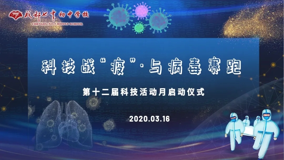 2020年3月16日早上8点,我校第十二届科技活动月启动仪式通过网络直播的形式如期举行,本届科技活动月以“科技战‘疫’·与病毒赛跑”为主题,共有来自本部和锦城两校区七、八年级全体师生共1200余人参加线上启动仪式。启动仪式由成都七中初中学校科技活动总辅导员郭建老师主持。