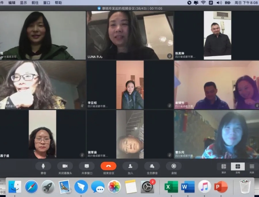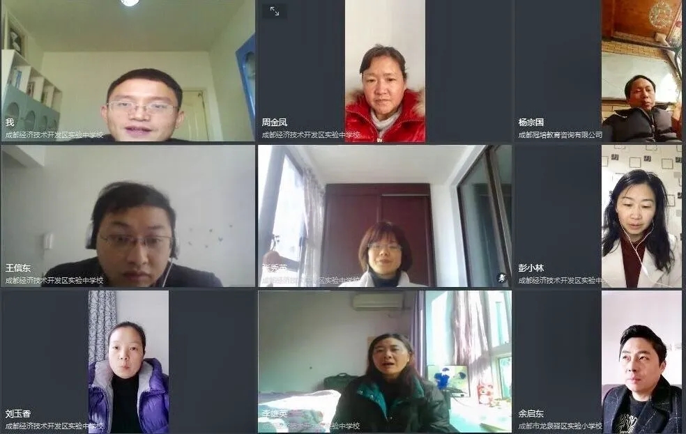 ▲工作室核心成员、成都市西北中学外国语学校王国贤校长主持在线教学筹备会