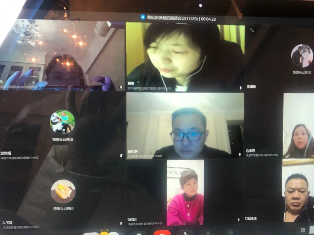 ▲工作室核心成员、成都市新都区毗河初级中学校黄旭阳校长主持防疫工作会议