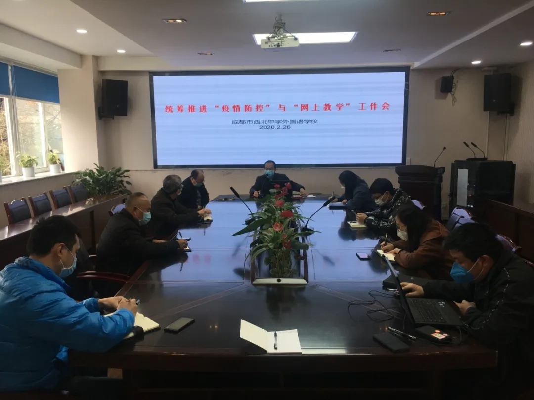 ▲工作室核心成员、绵阳中学育才学校孙昌均校长主持延迟开学工作会