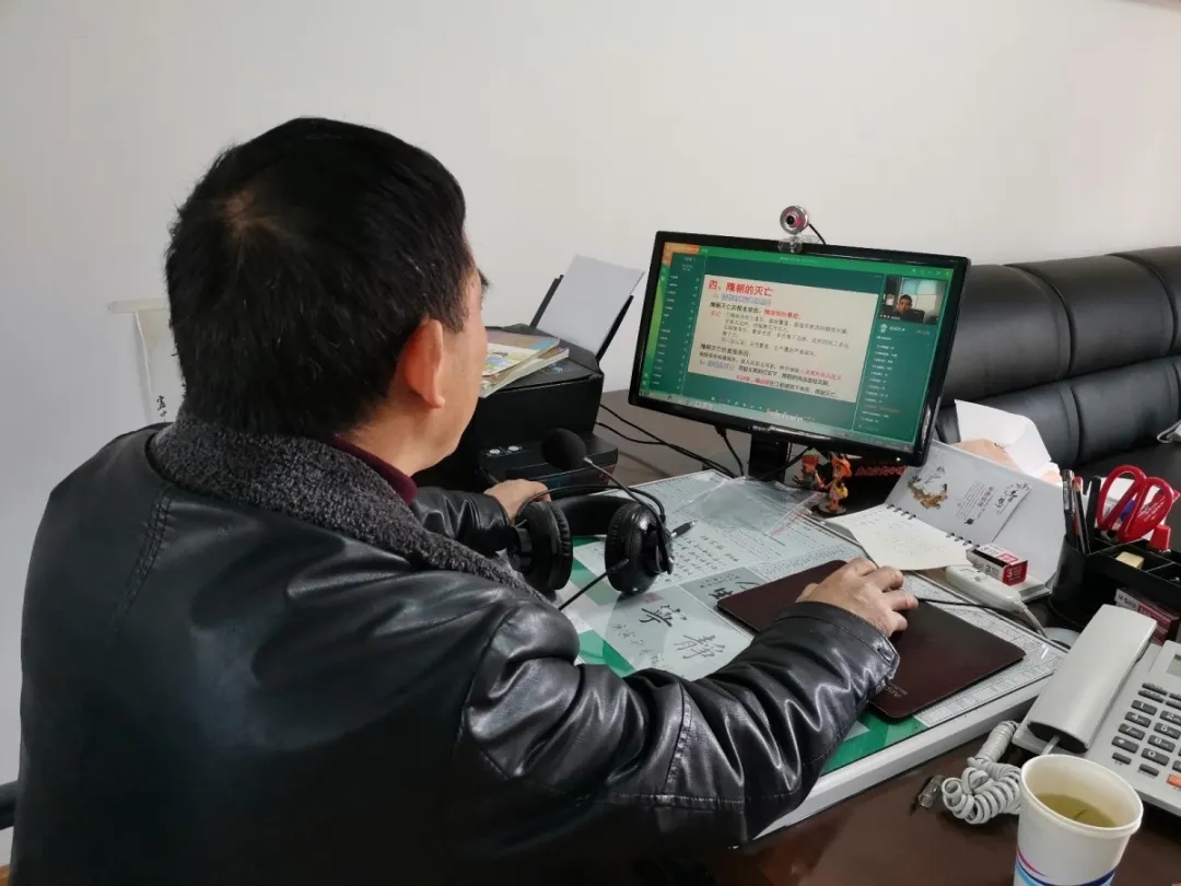 ▲工作室核心成员、崇州市江源镇中学刘中立校长网上学习开学第一课《停课不停学 成长不停歇》