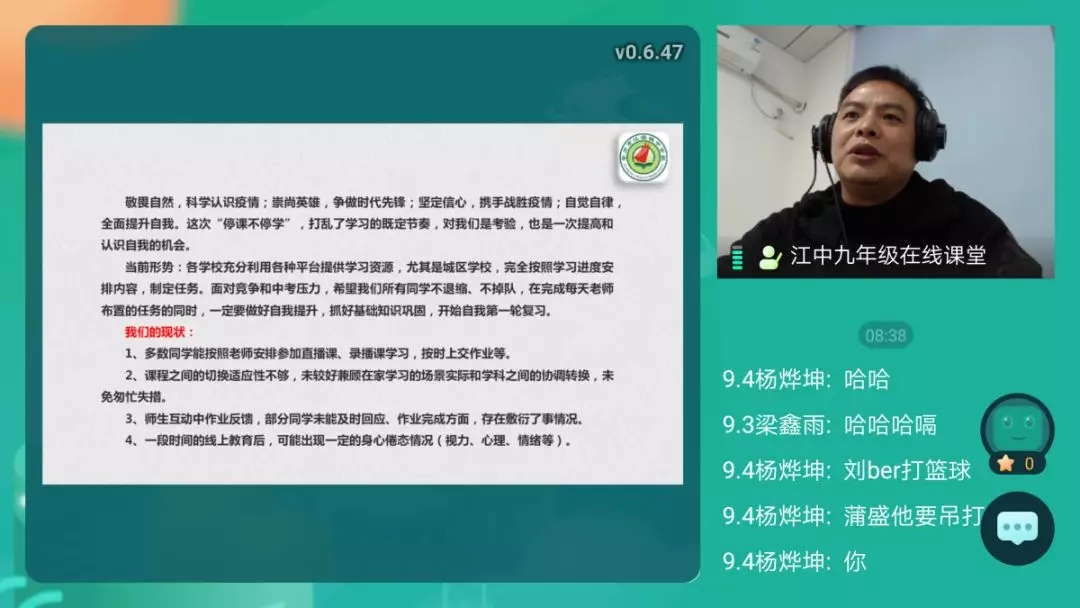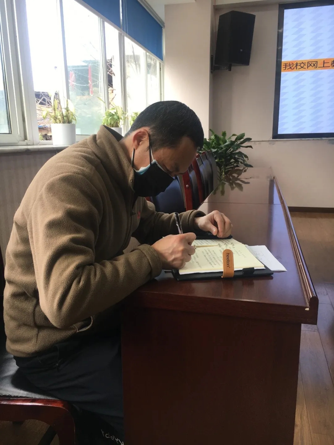 稳定军心,引领师生。各成员学校第一时间成立以校长为负责人的疫情防控工作领导小组,以现代化网络平台为依托,明确学校各岗位、各单位工作责任制度,明确工作流程、上报方法,落实主体责任。同时工作室各学校之间齐心协力,联防联控,多次通过视频会议、电话会议等及时传达文件精神,讨论、部署防控工作。校长身先士卒,在延期开学在线学习的特殊“开学典礼”上进行开学第一课授课,激发师生斗志,凝心聚力战疫情。