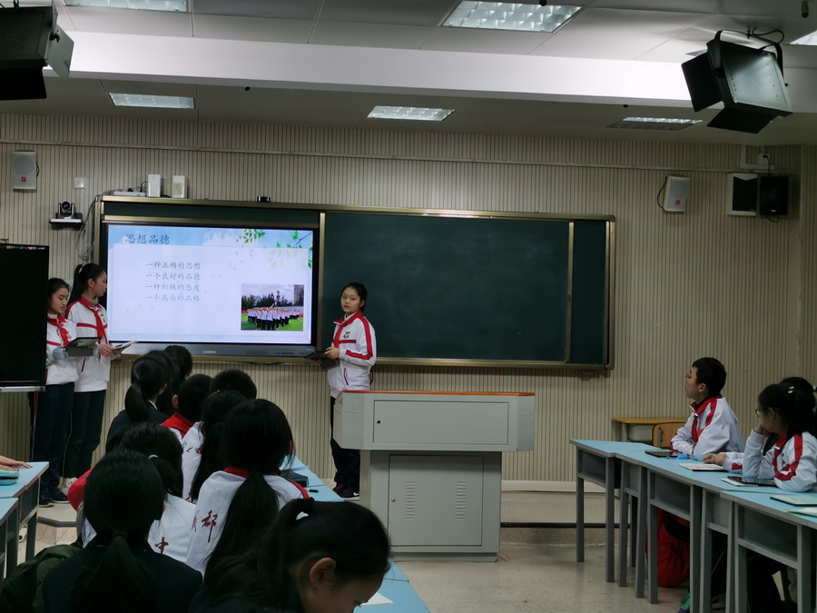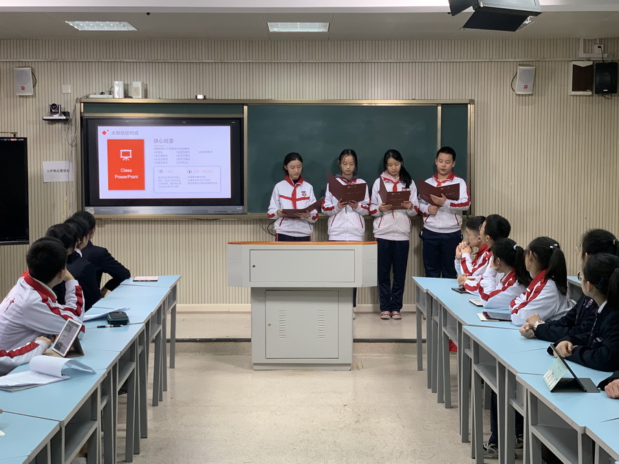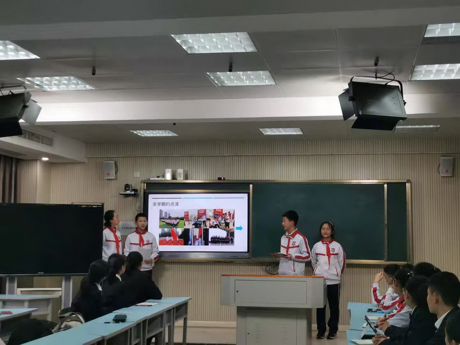 七中初中锦城校区各班班委在学术厅针对本学期工作进行了精彩的分享。学校副校长王岚老师和全体班主任出席了此次会议。