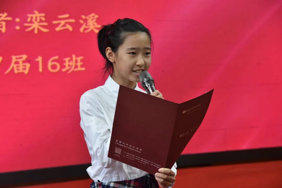 本次活动由天环校区2027届16名学生代表参赛。选手们风采各异,或沉郁顿挫,或豪情万丈。他们忆往昔、观当下、展明朝,共同掀起了激昂的声浪,汇聚成了七初校园里最为振奋人心的红色强音。