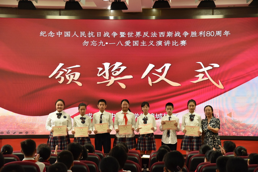 纪念“九一八”爱国主义演讲比赛也在锦城校区同步举行。锦城校区的比赛由2027届9班晋思琪同学主持。
