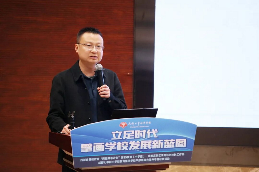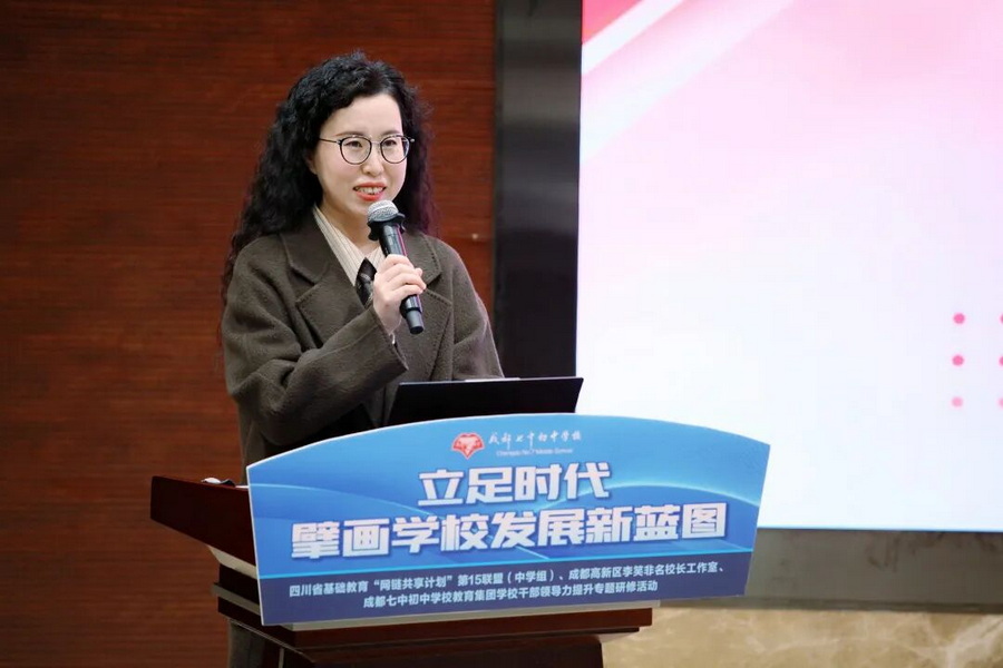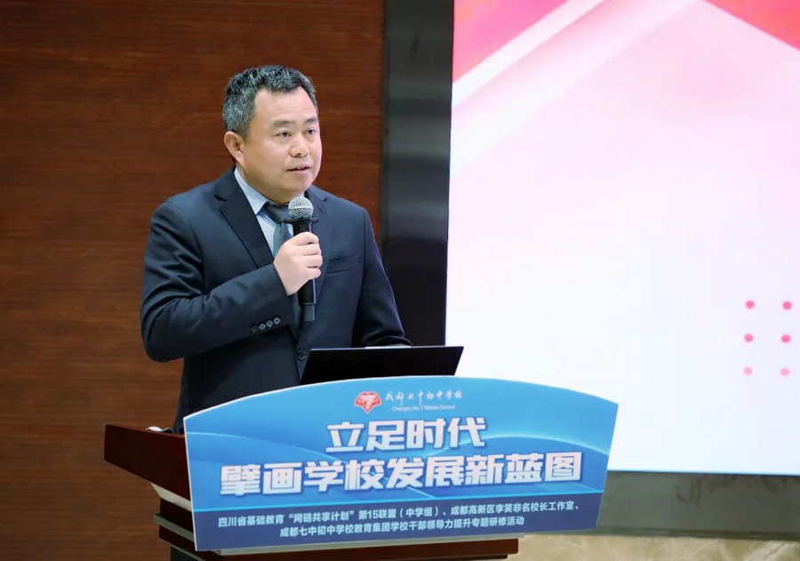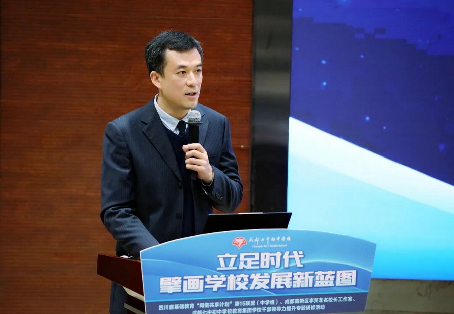 为深入贯彻习近平新时代中国特色社会主义思想,认真落实党的二十大及二十届历次全会精神,立足“十五五”规划开局之年,紧密围绕《教育强国建设规划纲要(2024—2035 年)》,深化教育教学改革,推动学校高质量发展,提升中小学干部领导力,着力锻造高素质专业化学校管理队伍,2026年3月13日,以“立足时代,擘画学校发展新蓝图”为主题的学校干部领导力提升专题研修活动,在成都七中初中学校天环校区举行。