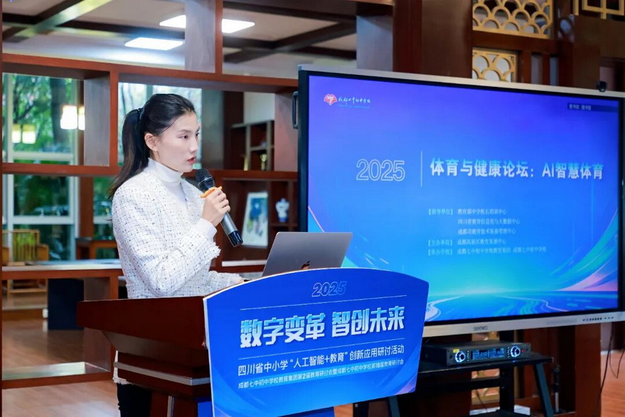 宋植燕老师分享了北京第二外国语学院成都附属小学如何运用AI技术开展智慧体育教育的经验。她表示,学校通过AI技术解决体育教学中的数据采集和分析问题,实现了个性化教学和家校数据共享。实践分为三个阶段,包括筑基、试点和推广,该模式已在增强学生体质、提升教学质效上取得显著成果。展望未来,学校将加强技术迭代优化与经验推广共享,积极探索体育健康大数据的创新应用。